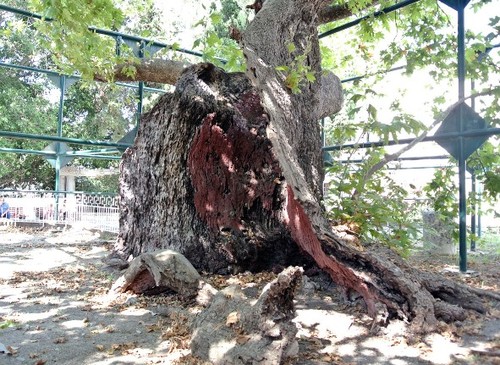 Começamos a pé pela Ágora antiga onde abundam vestígios e ruínas, entre as quais a do Templo de Hércules, de quem Hipócrates descenderia pelo lado materno. O "fundador da medicina moderna" aqui nasceu em 460 a.C. e teria plantado o milagroso gigantesco plátano que nos dá uma sombra benfazeja enquanto o evocamos. Além de ter pela primeira vez, que se saiba, classificado doenças e os quatro temperamentos psicossomáticos relacionados com os elementos da natureza, proferiu o juramento que ficou célebre.