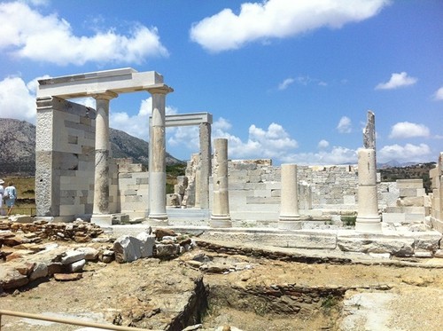 Desembarcados que fomos em Naxos, todos rumámos ao Templo de Apolo sobre as águas, simbolizado por um pórtico recortado no azul e muito mármore jacente. Quase nem demos pelo guia que se nos foi juntando pouco a pouco, discreto e seguro, com um discurso ligado e sereno. Fez a sua vida no mar, é reformado, "sempre destacado para receber VIP". Nenhum arroubo, fundo severo, tudo o que viveu e sabe está à vista, "não precisa de livro nem de arquivos".