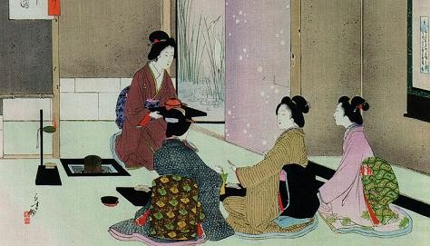 ... ... Não me peçam agora, a mim, profano na matéria e viageiro fatigado de tão multíplices impressões que tenho vindo colhendo por esse mundo fóra, uma opinião pessoal sobre o cha-no-yu. Estive uma vez,é certo, com dois ou três amigos, numa das cha-ya de mais fama da cidade de Kobe; e Tama-Guiku (O Malmequer Precioso) era a esplêndida sacerdotisa da cerimónia. A impressão que daquela noite guardo é indefinida, fugidia, como a de um vago sonho que tivesse. Ficaram-me reminiscências indecisas do luxo sóbrio e harmonioso e do asseio extremo das coisas impregnadas de exotismo onde pousou o meu olhar. Na meia luz do plácido aposento, amplo e silencioso como um templo, contornava-se, distante, um vulto de mulher, de joelhos, envolta em sedas magníficas .As atenções fixavam-se especialmente, como que por atracção hipnótica, nas suas mãos finíssimas, alvejando no espaço como se fossem de marfim, tomando de estranhos utensílios, preparando não sei que filtro de magia, poisando em mímicas hieráticas, quais mãos de mística oficiante de uma religião desconhecida. Por fim, convidado a partilhar no sacrifício, aceitava uma taça com chá que me era oferecida e levava-a aos lábios comovido, com não sei que súbitos escrúpulos de apóstata mal firme... «O Culto do Chá» foi pela primeira vez publicado em Kobe, em 1905. Para além do sentimento poético de Wenceslau, enfeitiçado pela graça delicada das mulheres japonesas (ou da Mulher Japonesa?), o livro contém informações pertinentes à história e cultura do chá, muitas delas, aliás, correspondentes às dadas pelo Tçuzu na sua História, obra que Moraes certamente não leu. Pessoalmente, a única publicação dela que conheço, em português, foi dada à estampa em Macau, nos anos de 1954-55, por J. Abranches Pinto. A edição mais divulgada -- tanto quanto eu saiba -- é a versão inglesa do padre Michael Cooper, com um título que este foi buscar a William Adams: This Island of Japon. Os capítulos referentes ao chá encontram-se traduzidos em castelhano por J.L.Alvarez-Taladriz (Arte del Cha, Tokyo, 1954). Adiante iremos visitar essa obra do século XVII. Voltemos agora ao nosso Wenceslau: Pouco depois, ainda mais outro bonzo (sempre os bonzos!), de nome Mioyé, colhendo de Eisei os vários segredos de cultura, novas sementes adquiriu, e em Toga-no-o e em Uji, lugares vizinhos de Kyoto, atentamente se entreteve em cultivar o chá; em Uji, de preferência, foram os resultados excelentes. Dois séculos depois, cerca de 1400, o shogun (generalíssimo) Asikawa (era Ashikaga) Yoshimitsu imprimiu vigoroso impulso às plantações de Uji, as quais tanto foram prosperando, mercê da riqueza do torrão, que de então até hoje o chá daquele sítio tem sido celebrado como o melhor de todo o Império; dele exclusivamente se serve o Imperador.