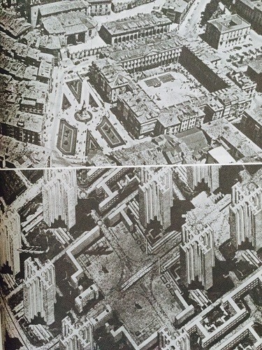 ‘A manifestação mais visível, pelas suas dimensões, da descontinuidade e da desordem do espaço contemporâneo, é a cidade. A cidade contemporânea atinge assim uma forma dominadora, uma escala visual cujo domínio o homem não pode controlar, e domina e absorve no seu crescimento todo o espaço que a envolve.’