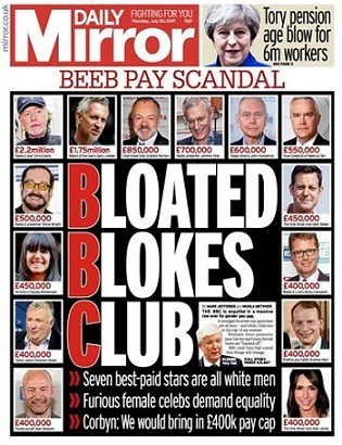 Entre caseiras aventuras informáticas e very sad news saídas do torneio em Wimbledon, eis que por cá irrompe nova, espetacular e prometedora série na praça mediática. Como qualificar a narrativa? Tudo se passa no círculo das celebridades e em casa aristocrata. Ora, a qualidade do guião é tal, que, momentaneamente, logra obscurecer no debate nacional a quarta vitória de Mr Chris Fromme no Tour de France e o 19.º título de Mr Roger Fedrer no Central Court ou até a chegada do épico Dunkirk às salas de cinema. Mesmo as lutas tribais de Westminster perdem luz. Também os cortes na saúde ou segurança social sossobram no altar da popularidade. Na town talk chamam-lhe o BBC Mon£y Show. Envolve dinheiro e poder, além da paga de licença sob pena de cadeia. Em plena era austeritária, com fartos tributos e soldos congelados, a estação pública remunera apresentadores & co com milhões. Pior. No topo das best-paid stars surgem rostos de programas desportivos, entre carros e futebol, com jornalistas, guionistas, produtores e, sobretudo, as mulheres que fazem igual trabalho, por vezes lado-a-lado no êcrã, a muitos cifrões de distância. A disciplina orçamental não é para todos, de todo em todo.