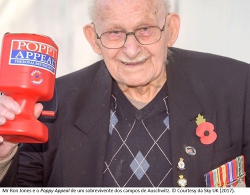 Frosty temperatures at Central London. Conspirações, mistérios e escândalos circulam em Westminster City à velocidade da luz. Atenção primordial, pois, para a estória cintilante do quase centenário Mr Ron Jones em vésperas do Remembrance Sunday. Conta a Sky News que o senhor há três decénios vende a Red Poppy com assinalável sucesso num supermercado local Tesco, sob uma aura especial e recuada à II World War. Soldado no 1st Battalion Welch Regiment no Middle East, em 1942 é capturado pelos Nazis em Benghazi (Libya) e transferido para Auschwitz (Ger). Aqui labora com judeus também escravizados na “IG Farben's infamous chemical factory.” Sobrevive, onde muitos caem que nem tordos. Perto do final da guerra, é forçado pelos caveirosos SS a uma marcha da morte, entre Poland e Austria, 17 gélidas semanas privado de mantimentos, arrostando o fenecimento dos pares, sendo finalmente libertado por tropas paraquedistas aliadas em May 1945. Regressa a casa, em Newport. Hoje, muito justamente aos olhos dos ilhéus, é classificado como "a legend" na comunidade de apoio à Royal British Legion.