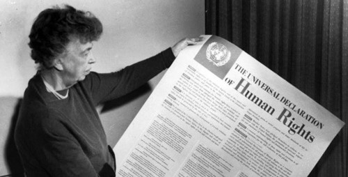 1. A Declaração Universal dos Direitos Humanos foi adoptada pela Assembleia Geral das Nações Unidas a 10 de Dezembro de 1948, em Paris: “A Assembleia Geral proclama a presente Declaração Universal dos Direitos Humanos como o ideal comum a ser atingido por todos os povos e todas as nações, com o objectivo de que cada indivíduo e cada órgão da sociedade, tendo sempre em mente esta Declaração, se esforce, através do ensino e da educação, por promover o respeito por esses direitos e liberdades, e, pela adopção de medidas progressivas de carácter nacional e internacional, por assegurar o seu reconhecimento e a sua observância universal e efectiva.” Nos artigos 1 e 2, lê-se: “Todos os seres humanos nascem livres e iguais em dignidade e direitos” e podem invocar os direitos e liberdades desta Declaração, “sem distinção alguma de raça, cor, sexo, língua, religião, opinião politica ou outra, origem nacional ou social, fortuna, nascimento ou qualquer outra situação.” Numa vinheta de 1998, no jornal EL PAÍS, referindo-se ao preâmbulo, aparece o próprio Deus a exclamar: “Que preâmbulo! Não tinha lido nada de tão bom desde o Sermão da Montanha”.