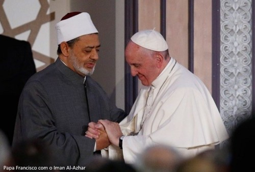 Foi também neste encontro que foi publicado o “Documento sobre a Fraternidade Humana”, já referido. Uma Declaração verdadeiramente histórica, elaborada ao longo de um ano de diálogos e debates entre Al Azhar e o Vaticano até alcançar a sua redacção final. “Em nome de Deus, Al Azhar al-Sharif, com os muçulmanos de Oriente e Ocidente, e a Igreja Católica, com os católicos de Oriente e Ocidente, declaram assumir a cultura do diálogo como caminho, a colaboração comum como conduta, o conhecimento recíproco como método e critério”. “Pedimos a nós mesmos e aos líderes do mundo, aos artífices da política internacional e da economia mundial, que nos comprometamos seriamente para difundir a cultura da tolerância, da convivência e da paz, intervir o mais depressa possível para parar o derramamento de sangue inocente e pôr fim às guerras, aos conflitos, à degradação ambiental e à decadência cultural e moral que o mundo vive actualmente.” De facto, “entre as causas mais importantes da crise do mundo actual estão uma consciência humana anestesiada e um afastamento dos valores religiosos, a que se junta o predomínio do individualismo e das filosofias materialistas”. Para a explicação das raízes do terrorismo niilista, o Documento insiste na “deterioração da ética, que afecta a acção internacional, e na debilitação dos valores espirituais e do sentido da responsabilidade”, elementos que favorecem a frustração e o desespero, “levando muitos a cair na voragem do extremismo ateu e agnóstico ou no fundamentalismo religioso, no extremismo e no fundamentalismo cego”.