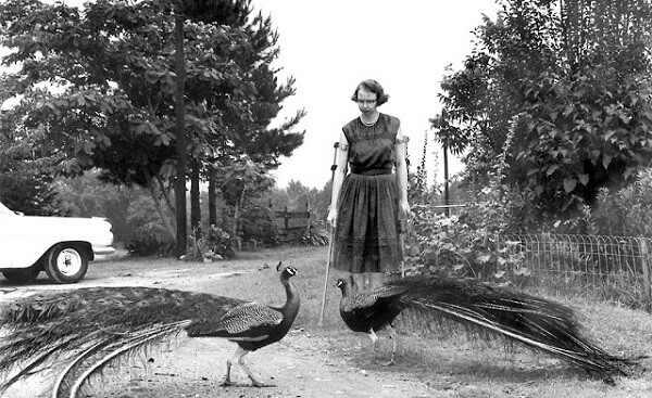 Flannery O’Connor com os seus pavões