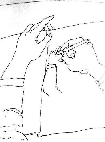 O desenho aparece aqui como um rio que não pára de correr. É como uma força em forma de sintonia com o tempo e o espaço, sempre presente e constante, mas sempre em permanente mudança. O desenho que se transforma, é uma interação mas também ao mesmo tempo uma reflexão acerca do mundo interior e exterior.