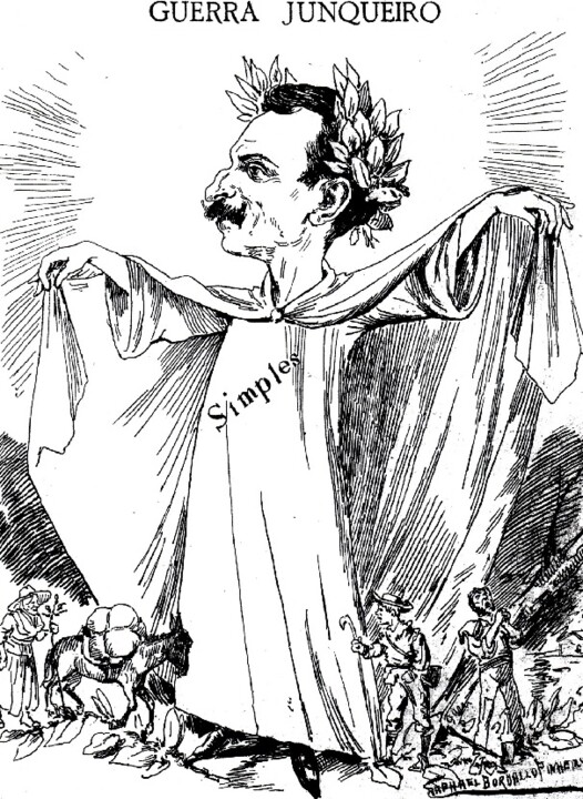 Em 1892, “O António Maria” publica, a propósito da saída de “Os Simples” uma significativa homenagem a Junqueiro, representado com uma coroa de louros numa pose glorificadora, quando o poeta afirmou: “Engana-se quem entre ‘Os Simples’ e ‘A Velhice do Padre Eterno’ descobrir porventura contradições. Este lirismo é o reverso daquela sátira”. Contudo, a última homenagem de Rafael Bordalo Pinheiro ao seu amigo Junqueiro ocorreu a propósito da publicação do poema “Oração ao Pão” em “A Paródia” (1902). É uma homenagem tocante, na qual o poeta surge como semeador de trigo e de palavras, vestido de mujique (como o mestre Tolstoi), trazendo um turíbulo aceso, donde saem nuvens de incenso. E J.-A, França refere a grande seriedade emotiva da caricatura, marcada pela palavra “Oremus!”. A caricatura é um verdadeiro testamento. Raul Brandão referir-se-á a “um pregador socialista-tolstoiano, um santo cavador, de barba negra e inculta”. E Bordalo Pinheiro não esconde a amizade profunda e a admiração pelo artista, que tão bem compreendeu o humor e o picaresco e que tanto o apoiou no projeto da Fábrica das Caldas da Rainha.