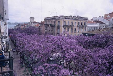 "Os Jacarandás da Avenida D. Carlos I, vistos do último andar do edifício do Café República, em 2009. É isto que vamos ter dentro de uma ou duas semanas"