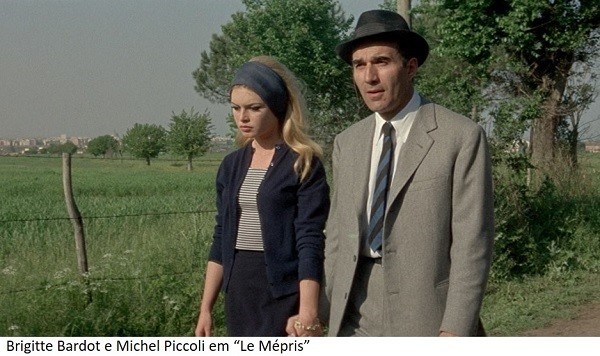 “Le Mépris” é, como os filmes de Godard, um díptico: num está o cinema, no outro a vida. A personagem de Piccoli tem na re-escrita do argumento de um filme, que pretende adaptar a “Odisseia”, a oportunidade profissional da sua vida. Vai trabalhar com e contra um realizador famoso (um Fritz Lang a fazer de Fritz Lang) por encomenda de um americano colérico que é produtor por orgulho, “como todos os produtores”, diria Godard.